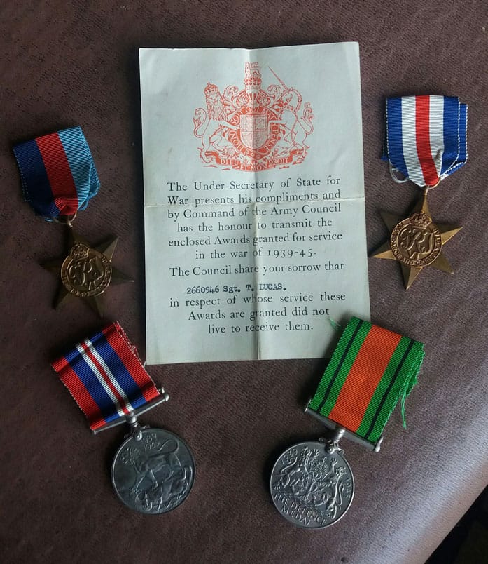Young Keith Lucas is 4 years old; his sister Jeanette is 1½ years old.  Sometime mid October 1944, his mother and grandmother sit him down in the living room of their cottage in Bishop’s Castle, and prepare him for hearing serious news.  His young mind hears and remembers “Daddy’s dead,” and later recalls the understanding that he would not see his father again. His father, Sergeant Thomas William “Bill” Lucas, Coldstream Guards, was KIA in Operation Market Garden at Overloon when his tank hit a mine.