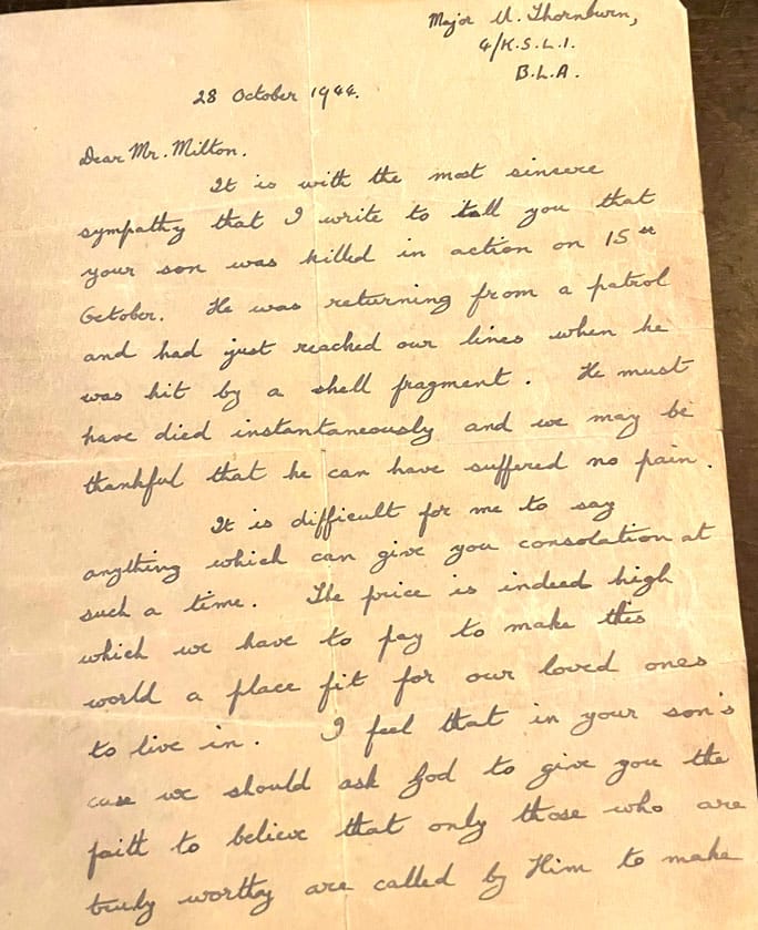 In early November, the family receives a letter of condolence from Major Urwin Thornburn: