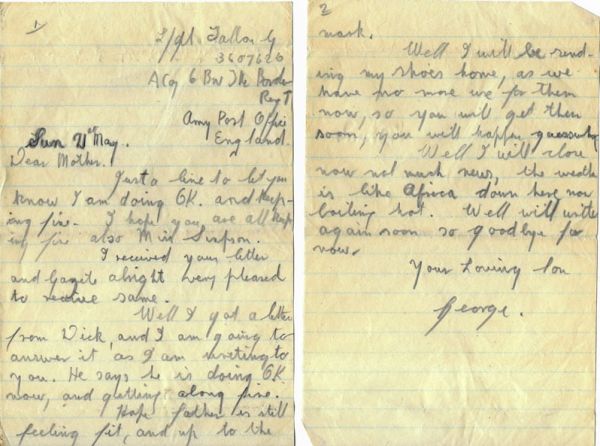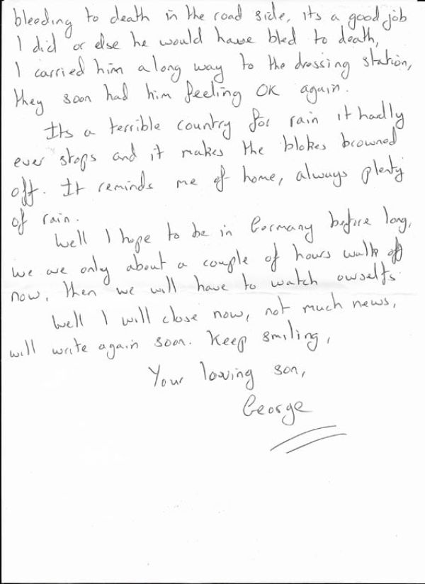 Even during the Battle of Overloon, George was still writing home that he hoped to move on to Germany soon (“but then we’d have to be careful”), that there wasn’t really that much news and “keep smiling”.