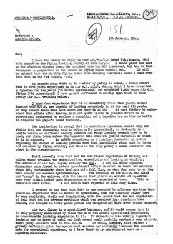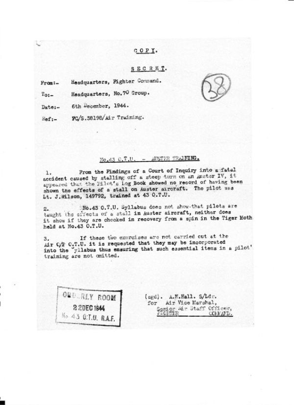 He joined no 35 AOP course on 3 May 1944 initially completing Elementary Flying Training School and subsequently the Operational Training Unit (OTU) on 20 July 1944.
